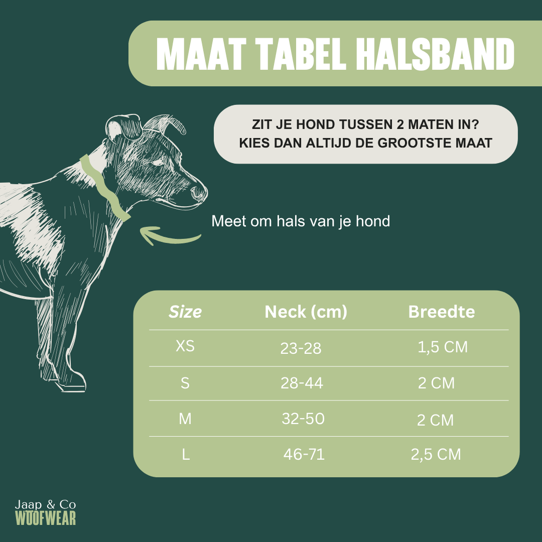 Halsbanden moeten niet alleen mooi zijn, maar vooral goed passen. Hieronder vind je onze maattabellen voor standaard én waterproof halsbanden. Zo kies je makkelijk de juiste maat voor jouw hond en voorkom je dat je de verkeerde maat besteld.