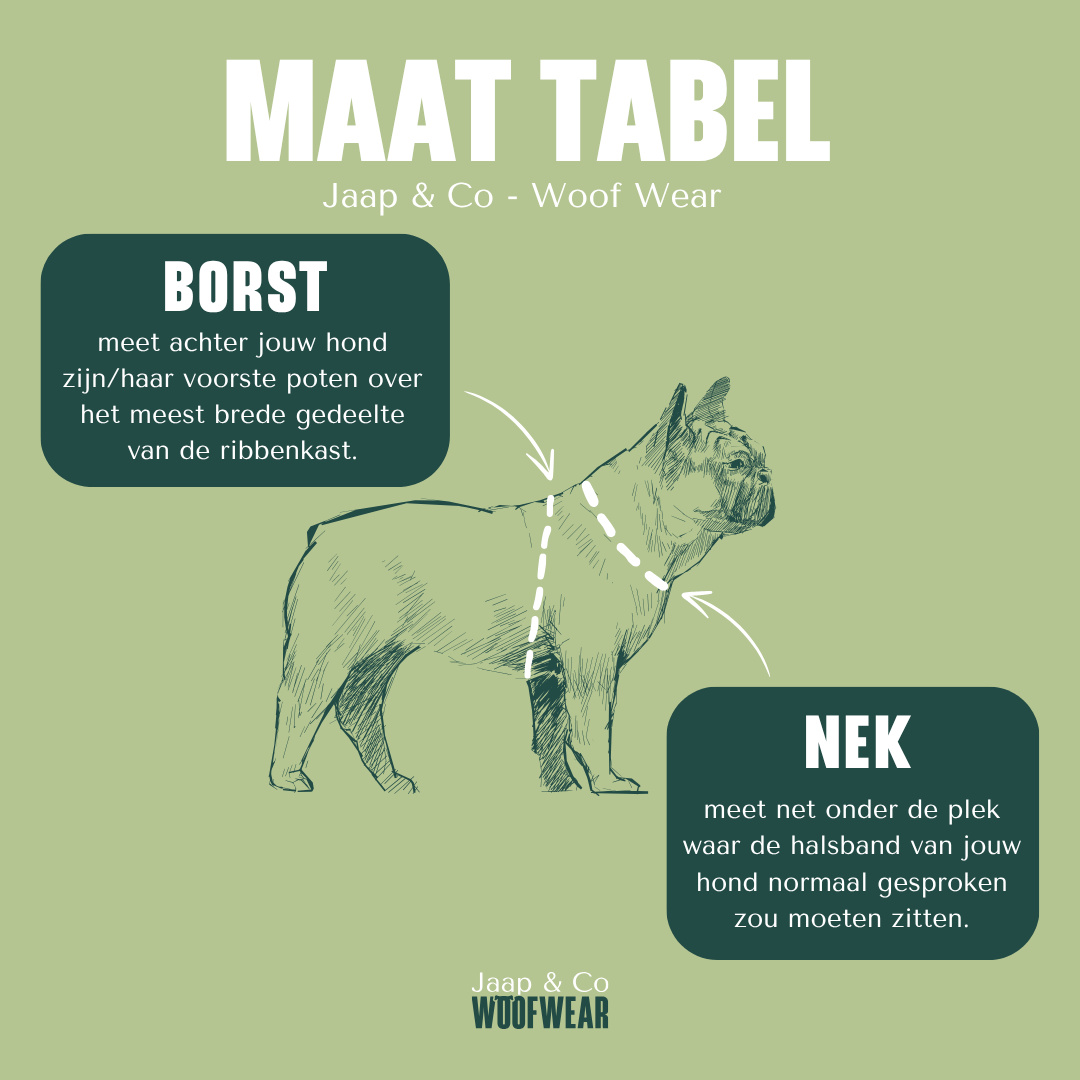 Tuigjes moeten niet alleen mooi zijn, maar vooral goed passen. Hieronder vind je ons maattabel. Zo kies je makkelijk de juiste maat voor jouw hond en voorkom je dat je de verkeerde maat besteld.
